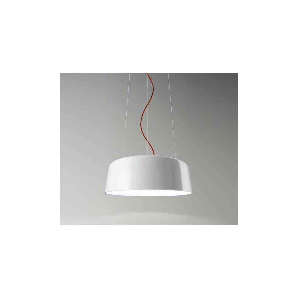 Lampa wisząca wykonana z toczonego aluminium z termoformowanym dyfuzorem z polimetakrylanu metylu (PMMA) mocowanym bez użycia jakichkolwiek śrub. Źródło światła LED złożone z 6 COB (wersja 60cm) lub 6 pasków (wersja 90cm). Obie wersje standardowo wyposażone w ściemniacz DALI/PUSH DIM zintegrowany z baldachimem. Oprawa wykończona farbą poliakrylową w kolorze biały połysk oraz metalizowany brąz. Kabel zasilający w czerwonej fakturze i 3 stalowe linki zwieszakowe o regulowanej długości. Idealny do biur, pomieszczeń mieszkalnych lub gabinetów.