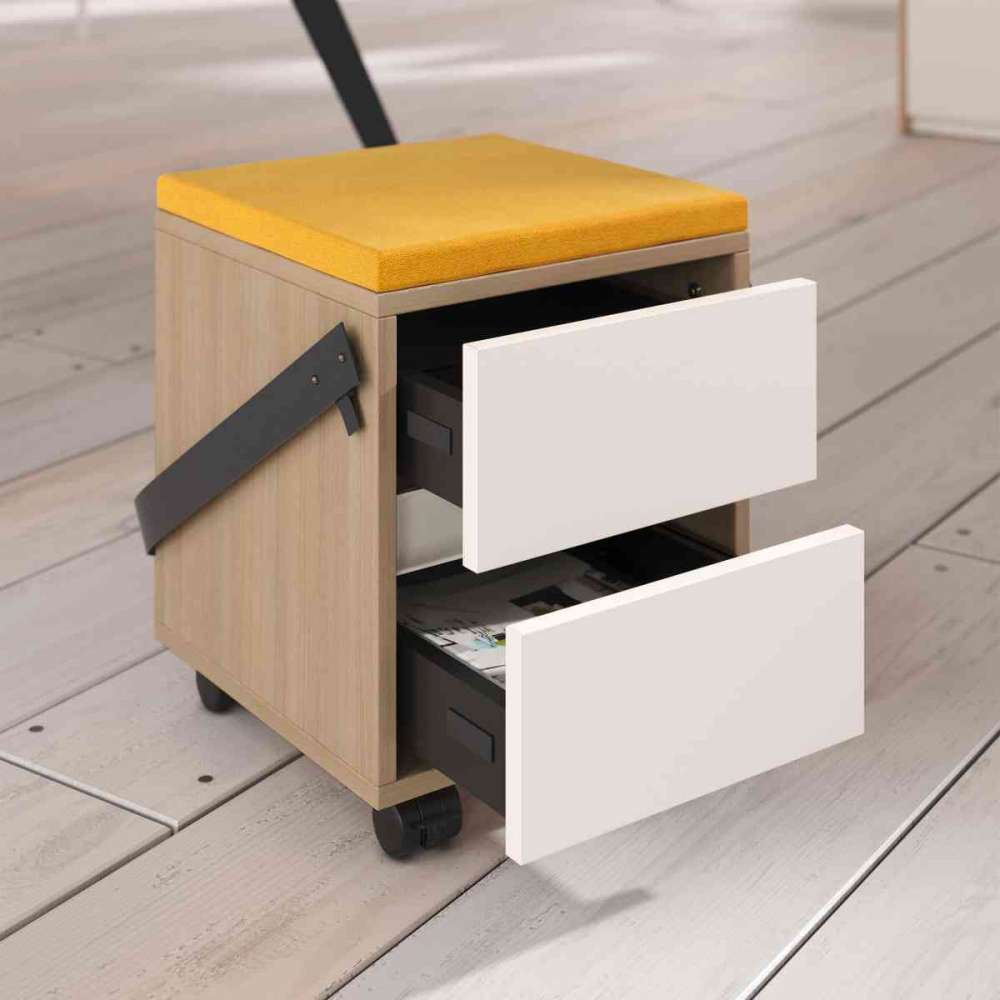 Mobilna powierzchnia magazynowa jest niezbędna w codziennym życiu biurowym. Kontenery biurowe mogą być praktycznymi pomocnikami w miejscu pracy. Pozwalają na przechowywanie dokumentów, teczek i przyborów biurowych. Dzięki inteligentnym pomocom organizacyjnym, takim jak uchwyty na pieczątki, ramki na teczki wiszące, uchwyty na napoje, długopisy itp., wszystko jest w zasięgu ręki – indywidualnie dopasowane do potrzeb każdego pracownika.