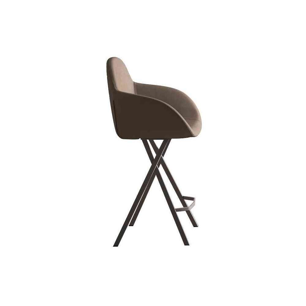 Fix Stołek barowy z siedziskiem pokrytym miękką skórą, miękką ekoskórą nabuk lub aksamitem. Metalowa konstrukcja.