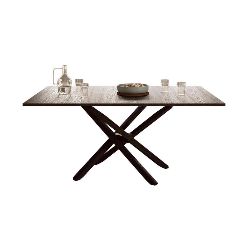Stolik kawowy, który staje się stołem jadalnym, po raz pierwszy w całości wykonany z drewna. Skrzyżowana podstawa, regulowana na dowolnej wysokości, idealnie komponuje się z rozkładanym, rozkładanym blatem. Ten niezwykły mebel jest w stanie harmonijnie wyróżnić się z otoczeniem mieszkalnym, w rzeczywistości gra przecięć podnoszonej podstawy tworzy idealne połączenie designu i wydajności.