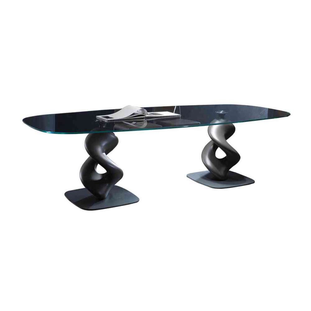 Stół do jadalni, metal i lakierowana Struktura z poliuretanu, blat ze szkła lub piroceramiki.