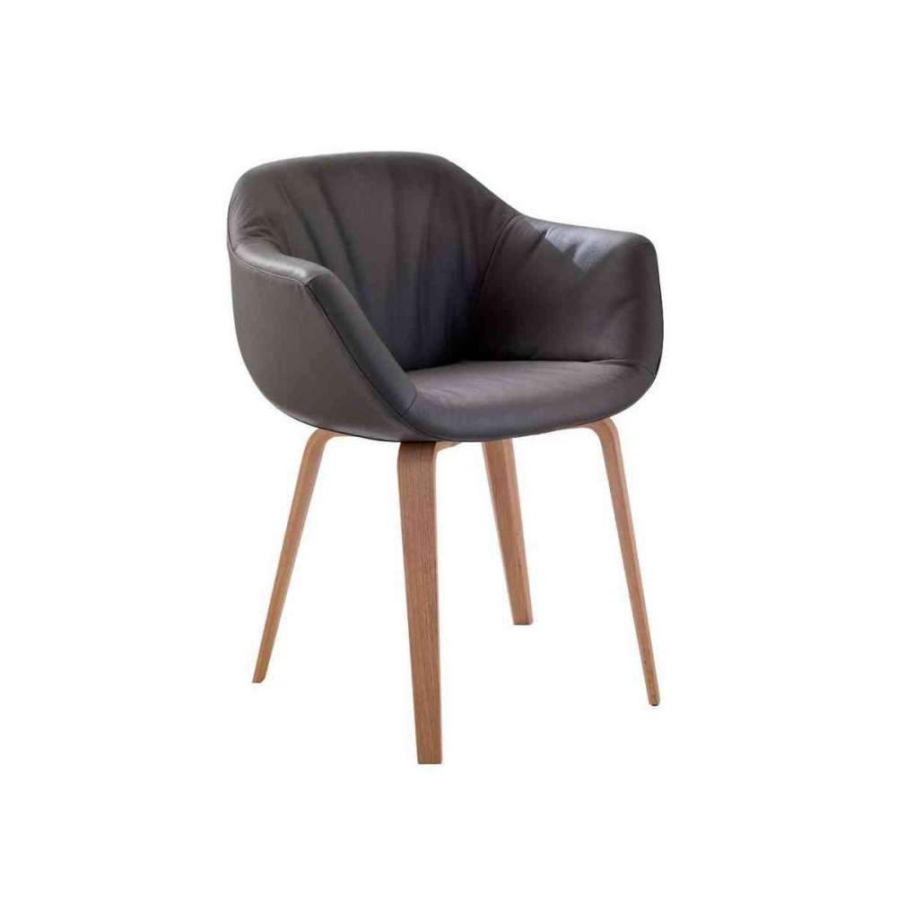 Fotel z obrotową sprężyną powrotną, miękka skóra, miękka ekoskóra lub aksamitne obicie i drewniane nogi.