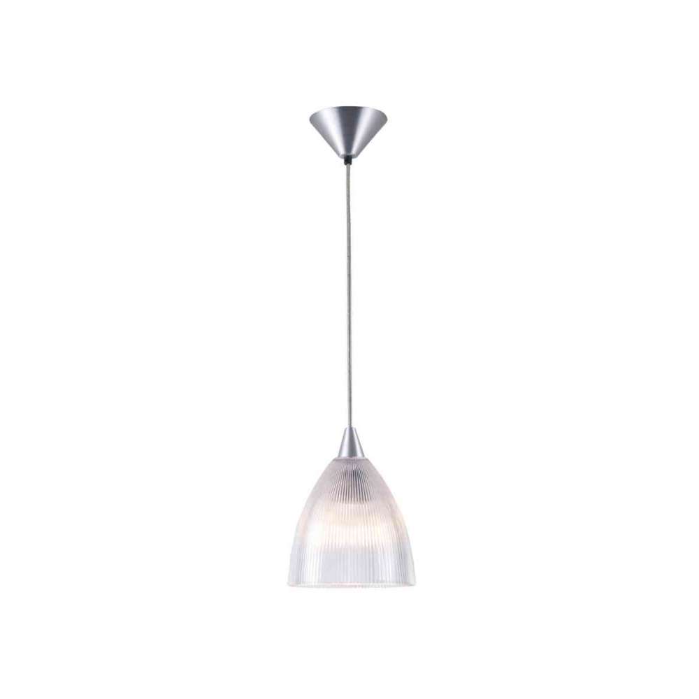 Lampa wisząca z kloszem z formowanego pryzmatycznego szkła, która błyszczy i załamuje światło, zapewniając równomierne, nieoślepiające oświetlenie, którego ton można zmieniać w zależności od zastosowanej żarówki.