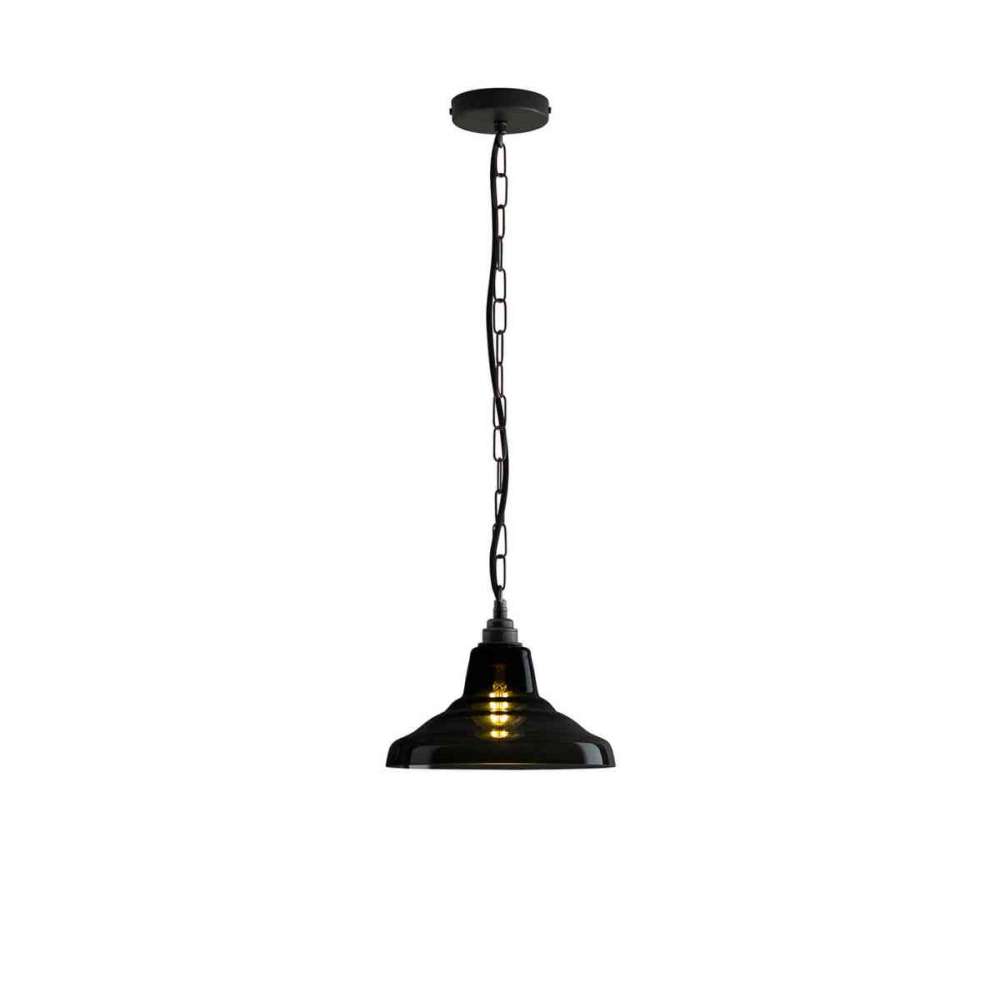 Zobacz większe Original BTC Glass School Pendant Light, Size 1, Anthracite and Weathered Brass