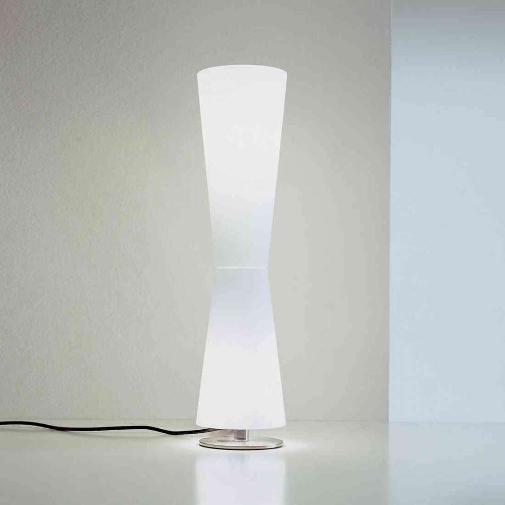 Lampa stołowa. Dyfuzor ze szkła Murano. Podstawa ze szczotkowanego metalu. Podwójny przełącznik/ściemniacz.