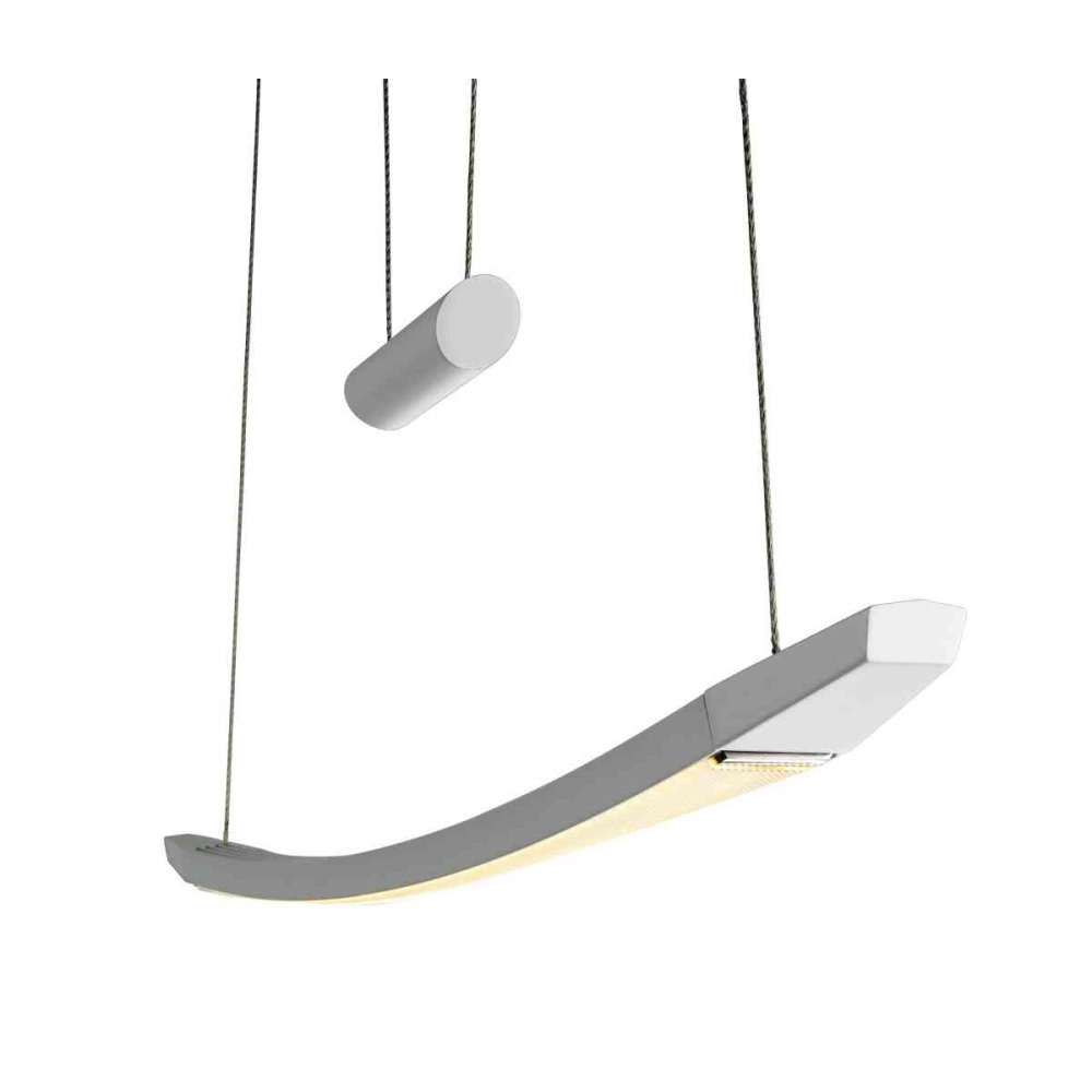 Lekkość, równowaga i geometria to podstawy minimalizmu. Ta smukła aluminiowa oprawa w kształcie miecza ma lekko zakrzywiony stożek świetlny, który zapewnia harmonijne i nieoślepiające oświetlenie dużych stołów. Odpowiednia przeciwwaga umożliwia płynną regulację pionową. Przyjazność dla użytkownika jest motywem przewodnim intuicyjnych funkcji sterowania. Zintegrowany ściemniacz dotykowy z funkcją pamięci reguluje intensywność światła.