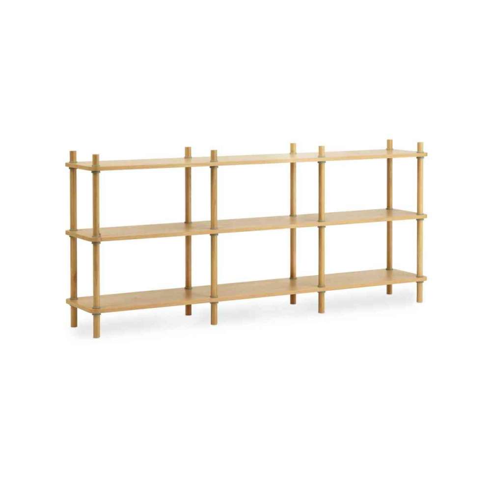 MATERIAŁY: Półki: Płyta wiórowa fornirowana dębem, Słupki: Lity dąb, Polipropylen