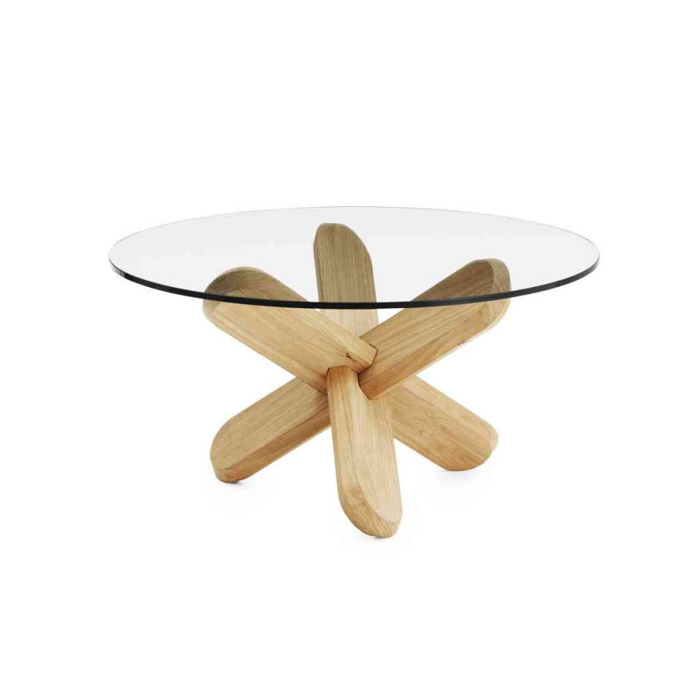 Zainspirowani starożytnymi trójwymiarowymi drewnianymi puzzlami, niemieccy projektanci Ding3000 stworzyli prosty stolik kawowy, który można złożyć bez pomocy śrub i narzędzi. Stół składa się po prostu z trzech dębowych nóg. Po złożeniu tworzą rzeźbiarski węzeł, który służy jako podstawa ekskluzywnego szklanego blatu.