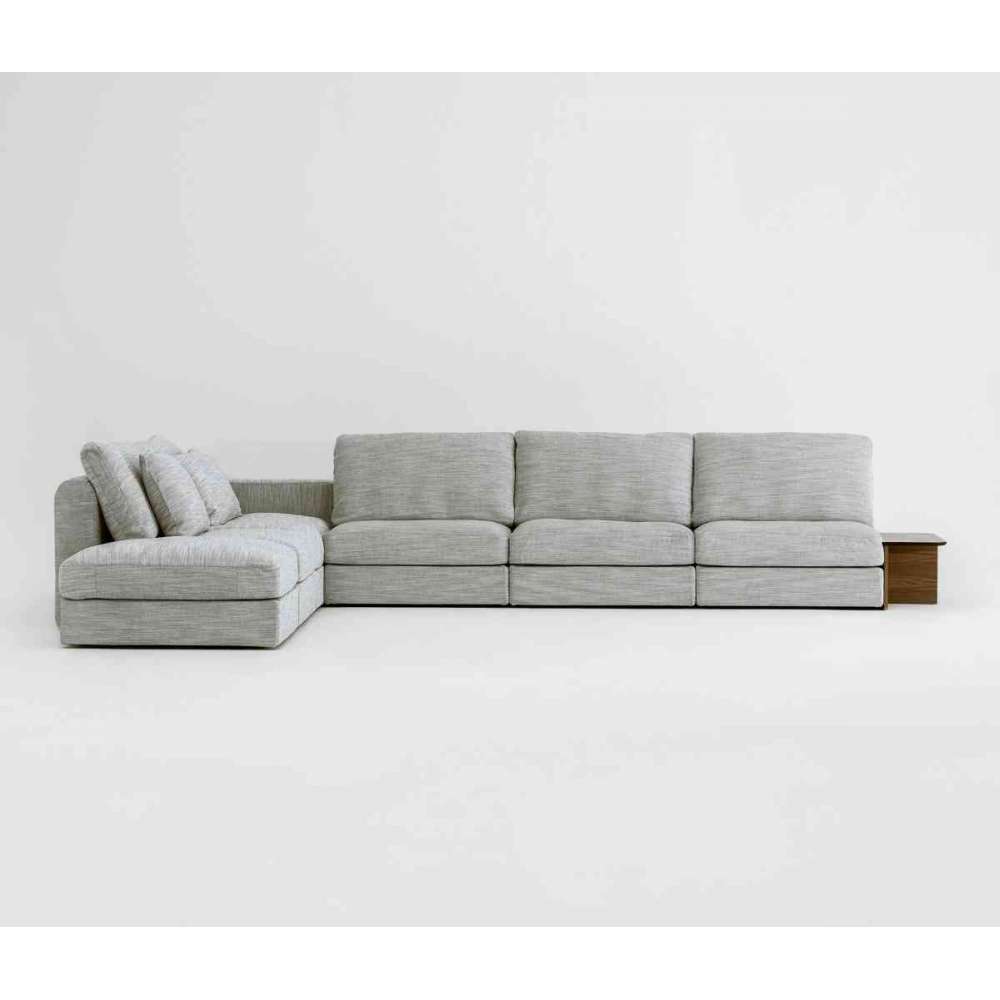 Raksa zaprojektowana przez Tomka Rygalika o prostej formie i wyrafinowanych proporcjach to super wygodna sofa modułowa o ponadczasowej linii. Oparcie jest harmonijnie skomponowane z dużych poduszek. Składa się z miękkich modułów umożliwiających wiele konfiguracji, a także zawiera moduł stołu fornirowany ponadczasowym, eleganckim dębem lub orzechem amerykańskim. Raksa dostępna jest w dwóch wersjach o różnych głębokościach, aby zwiększyć poczucie komfortu oraz dostosować swój standard do indywidualnych potrzeb. Zaprojektowany z myślą o zrównoważonym rozwoju i łatwości konserwacji, tapicerkę Raksa można całkowicie zdjąć.