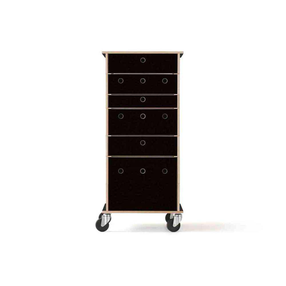 Ten modułowy system składa się z szuflad i elementów ramowych w czterech rozmiarach, które można zestawiać w dowolnej kombinacji. Drabinę można zbudować zgodnie z własnymi potrzebami. Szuflady mają dwa różne fronty. Na jednym froncie znajduje się pojedynczy otwór na palec, na drugim znajdują się dwa dodatkowe otwory do umieszczenia etykiet z numerami, literami lub symbolami. W razie potrzeby drabina może być dostarczona z kołami lub stopami.