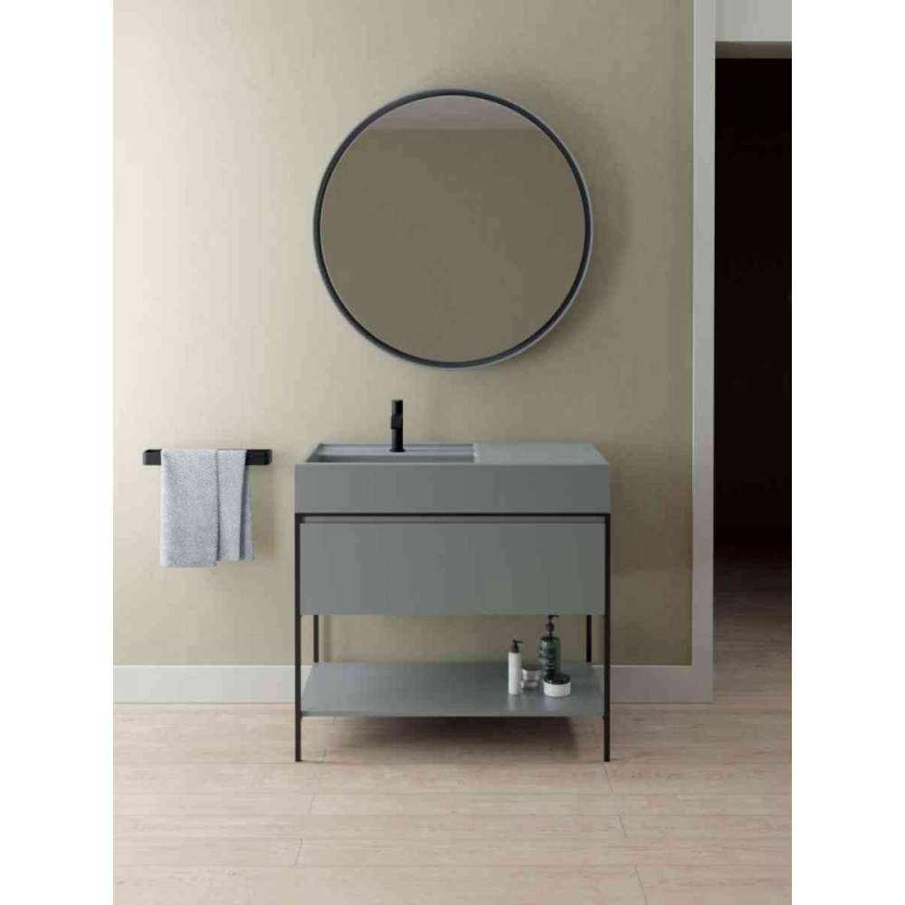 Stojąca szafka podumywalkowa z szufladami z płyty MDF, umywalka ceramiczna, konstrukcja stalowa.