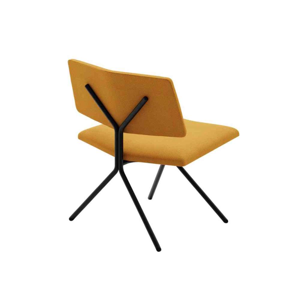 Krzesło charakteryzuje się krzyżowym tyłem ramy.