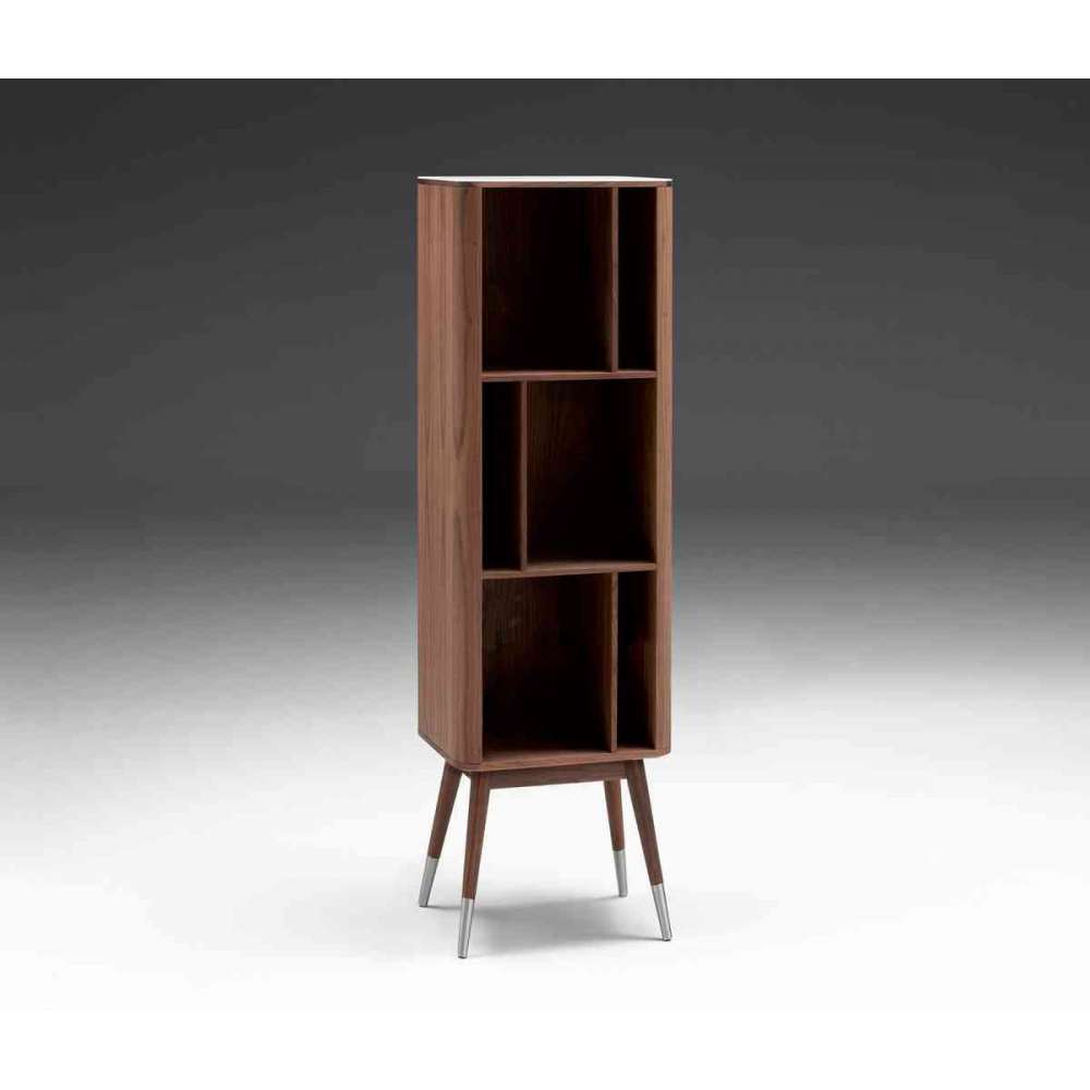 Szafka z miejscem do przechowywania pięknych rzeczy, które kochasz. Na wierzchu biały Corian. Półki można montować poziomo i pionowo. Spiczaste toczone nogi są pięknie wykończone podstawą ze stali nierdzewnej.