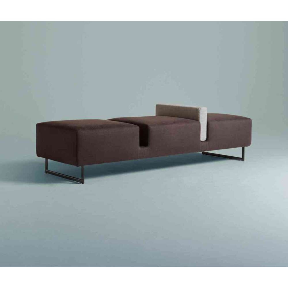 Wyściełana dwu- lub trzyosobowa ławka o czystych, podstawowych liniach. Obudowa pod (opcjonalną) poduszkę może również pełnić funkcję miejsca na magazynki lub przedmioty. Idealny do mieszkań i obiektów użyteczności publicznej