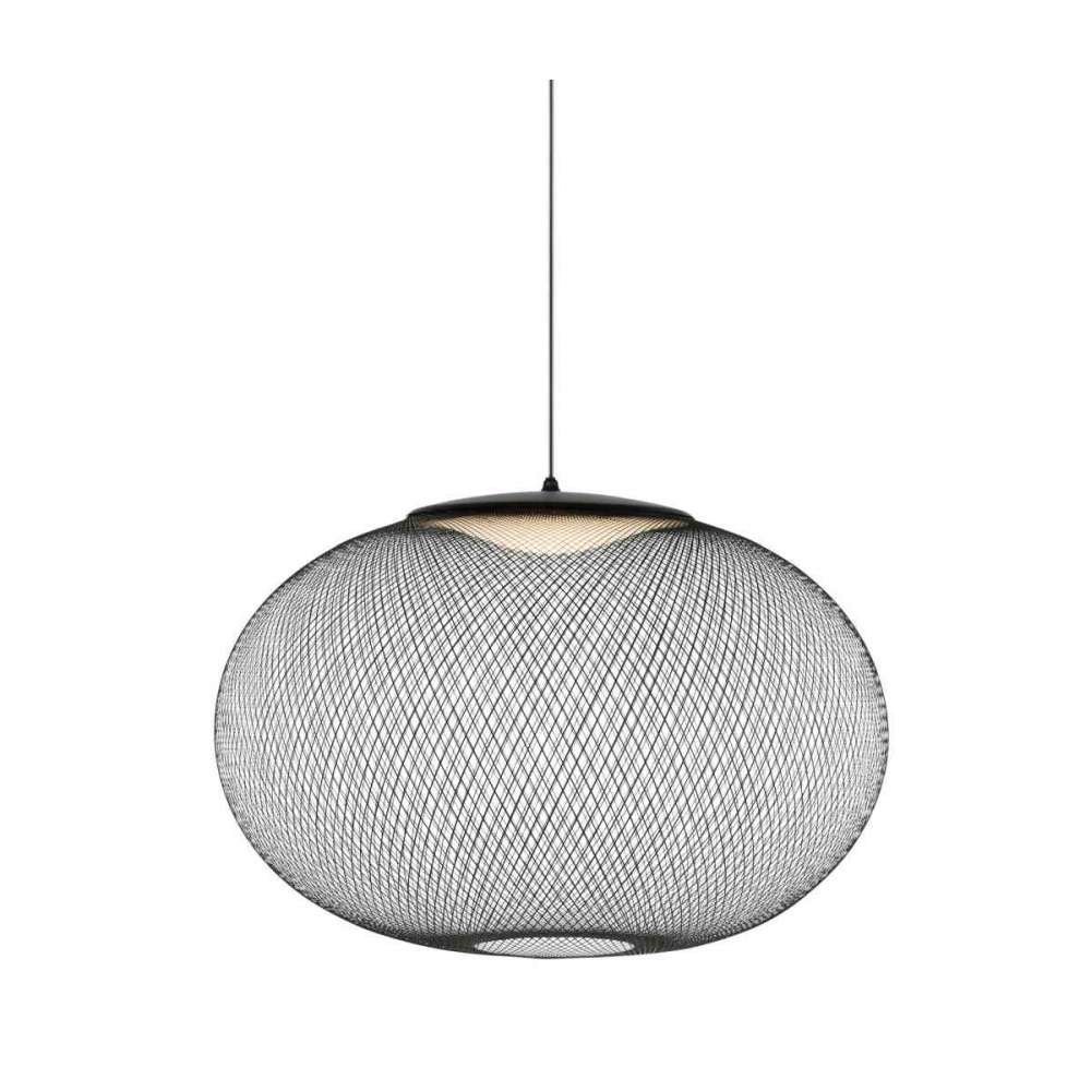 NR2 marki Bertjan Pot to elegancka i jasna bańka z białej lub czarnej nici. Wzór kraty tworzy delikatną sieć, która błyszczy i mieni się w świetle. Cienka wstęga ma owalny kształt i nosi charakterystyczny styl Bertjana Pota