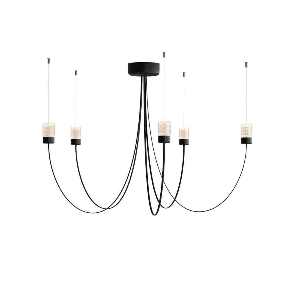 Aby rozwikłać jego tajemnicę, wystarczy drugie spojrzenie. Dzięki elastycznym ramionom określasz średnicę żyrandola i wybierasz, dokąd zmierza światło, ale zawieszone elementy tworzą naturalne krzywe ukształtowane przez grawitację.