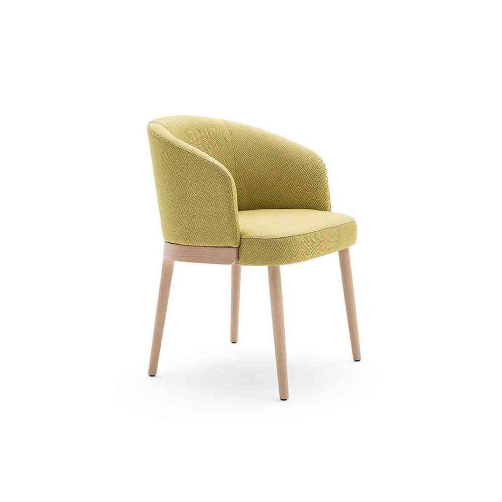 W tym celu wykorzystaliśmy okrągłe linie i miękkie obicie, podkreślone płynnym przejściem od siedziska do ramy nośnej wykonanej z litego drewna.