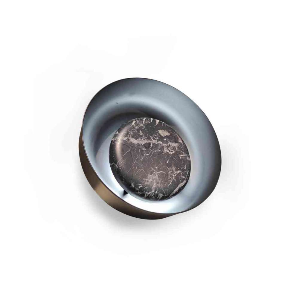 Leuca to nowa lampa dotykowa z zewnętrzną obudową, której źródło światła znajduje się w dysku z metalu oraz marmuru Emperador, Marquinia Black lub Calacatta.