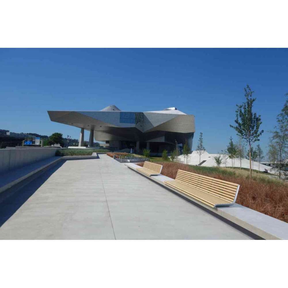 Ławka składa się z części bocznych ze stopu aluminium, ocynkowanej i malowanej proszkowo stali wzmacniającej i systemu kotwienia oraz siedziska z twardego drewna. Wersję z oparciem można uzupełnić o podłokietniki ze stopu aluminium.