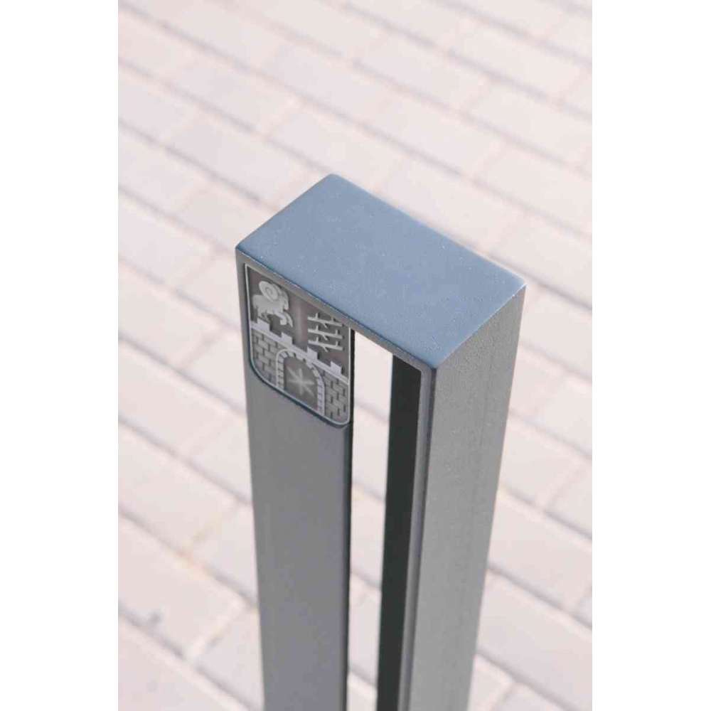 Konstrukcja stalowa ocynkowana, malowana proszkowo. Opcjonalnie może być wyposażona w herb miejski z odpornego na korozję stopu cynku lub bezobsługowe, niskonapięciowe źródło światła LED. Możliwość zakotwiczenia w chodniku lub pod chodnikiem za pomocą ukrytych wkrętów.