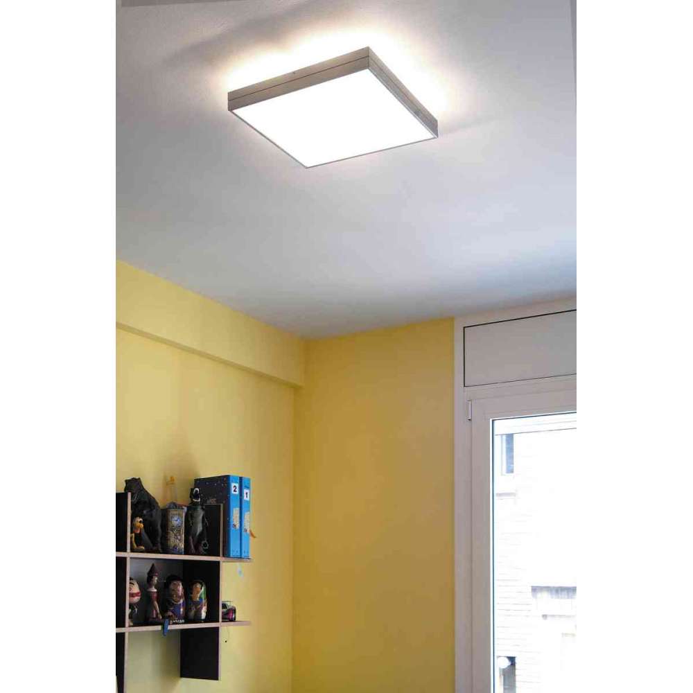 Klosz rozpraszający z optycznego, trawionego kwasem szkła o grubości 4 mm. Rama z wytłaczanego aluminium z wtryskiwanymi złączami aluminiowymi. Wykończenie z satynowego szczotkowanego aluminium i białego matowego lakieru (RAL 9016). Mocowanie ramy do podstawy za pomocą śrub ze stali nierdzewnej. Podstawa mocująca z tłoczonej stali, lakierowanej na biało matowo (RAL 9016) i lakierowanego metalu w kolorze szarym (podobnie jak RAL 9006 mat).