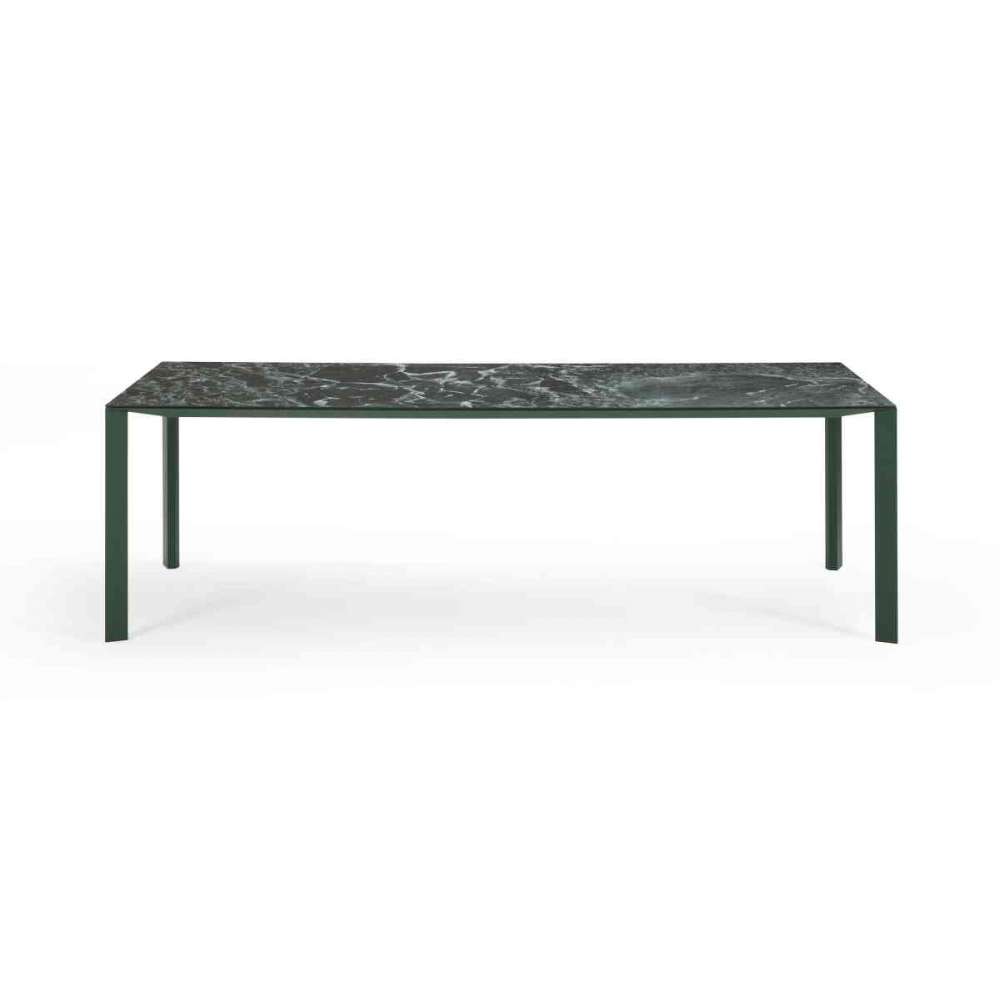 Stół stały lub rozkładany z podstawą na czterech nogach. Nogi i konstrukcja z lakierowanego aluminium , mdf lub laminat. Nadstawki pasujące do blatu, otwierane półautomatycznym mechanizmem składania.