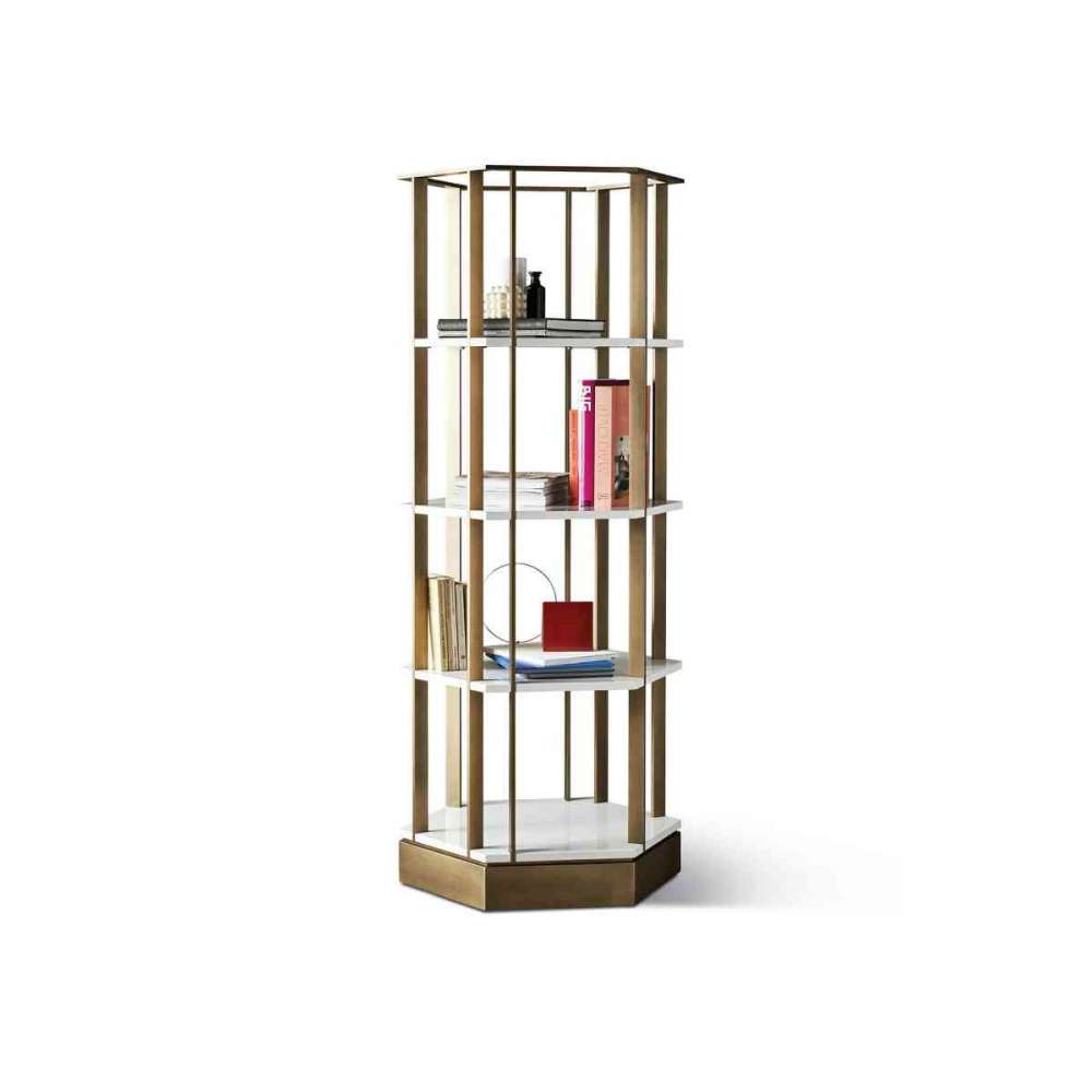 Kształt wyprzedza funkcję, dzięki czemu „wystrój” jest wolny od narzuconego przeznaczenia. Regał Sebastian, który również ma być elementem dzielącym, ma sześciokątną metalową ramę z brązowym mosiądzem, platynową stalą lub matowym czarnym wykończeniem. Połączenie zewnętrznych wykończeń z matowym lub błyszczącym lakierem półek nadaje nowoczesny wygląd.
