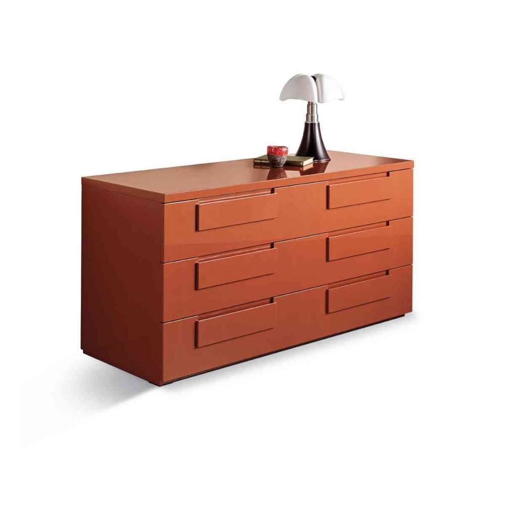 Ten stolik nocny z szufladami przywodzi na myśl dyskretny design i wizualną niezbędność kolekcji o tej samej nazwie. Wersja bejcowanego dębu podkreśla surowość projektu, podczas gdy wersje chromatyczne z lakierem nadają nowoczesny i swobodny wygląd.