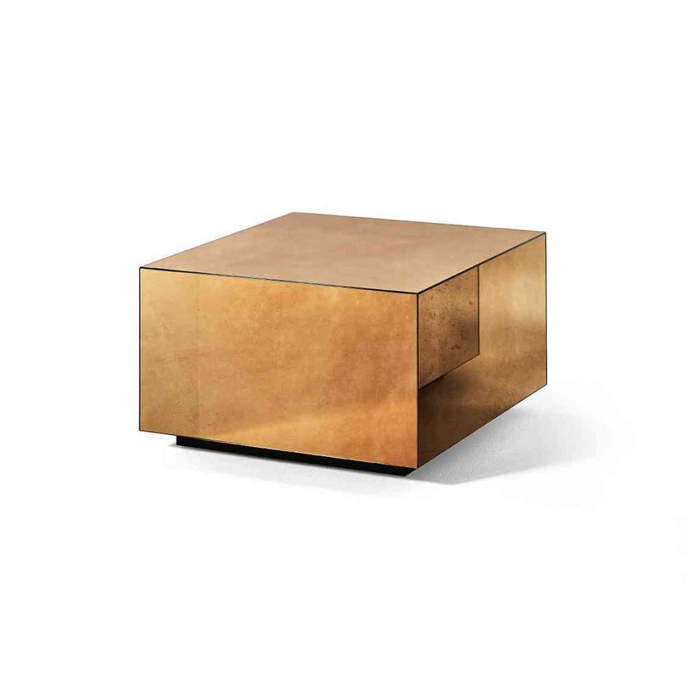 Kluczem formalnym tej rodziny niskich stolików jest geometryczna doskonałość. Obwodowe panele boczne są dostępne z ręcznie wykonanymi wykończeniami, takimi jak brązowany mosiądz lub stal platynowa, z blatami w różnych wykończeniach, od szkła po lustra, lakier i marmur.
