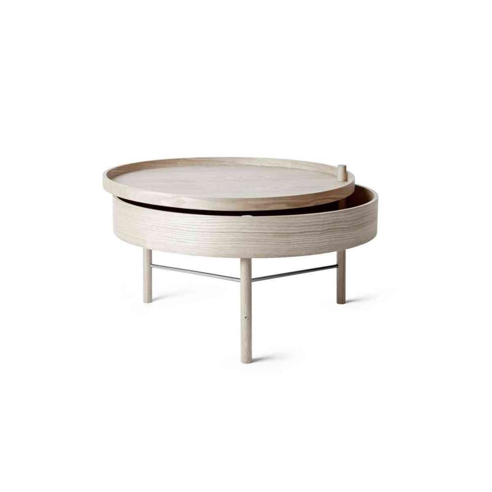 Niemiecka projektantka Theresa Arns eksperymentowała ze sposobami łączenia stołu i przechowywania, kiedy natknęła się na pomysł pokrywy, która otwiera się, obracając ją wokół jednej z nóg. Rezultat jest elegancki, bezpretensjonalny i całkowicie uzależniający (pokaż go gościom, a będą otwierać i zamykać Turning Table przez wiele godzin). „Mój projekt jest dość funkcjonalny” — mówi Theresa. „Ale myślę też, że ważne jest, aby przedmioty, którymi się otaczamy, miały ciepłą i poetycką część”.