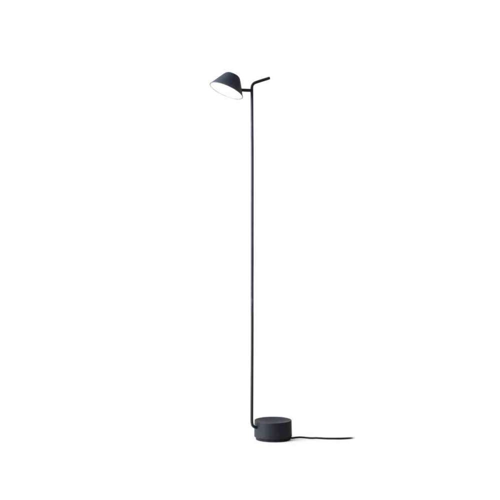 Lampa podłogowa Peek jest prosta, skromna i nieco dziwaczna w swojej formie. Zaprojektowany przez Jonasa Wagell jako rozszerzenie lampy stołowej Peek, Jonas chciał stworzyć przedmiot, który wyrażałby osobowość i zachęcał do intuicyjnego zaangażowania. Złożona tylko z trzech elementów lampa ma ciężką podstawę z długim smukłym trzonkiem i kloszem, który wdzięcznie wystaje z oparcia sofy lub fotela. Podstawa ma wklęsłą funkcję, tworząc małą przestrzeń do przechowywania niezbędnych artykułów piśmiennych, biżuterii i innych drobnych przedmiotów. Końcówka trzonka, oprócz tego, że jest elementem konstrukcyjnym, służy również jako funkcjonalny ściemniacz. Czarny biały