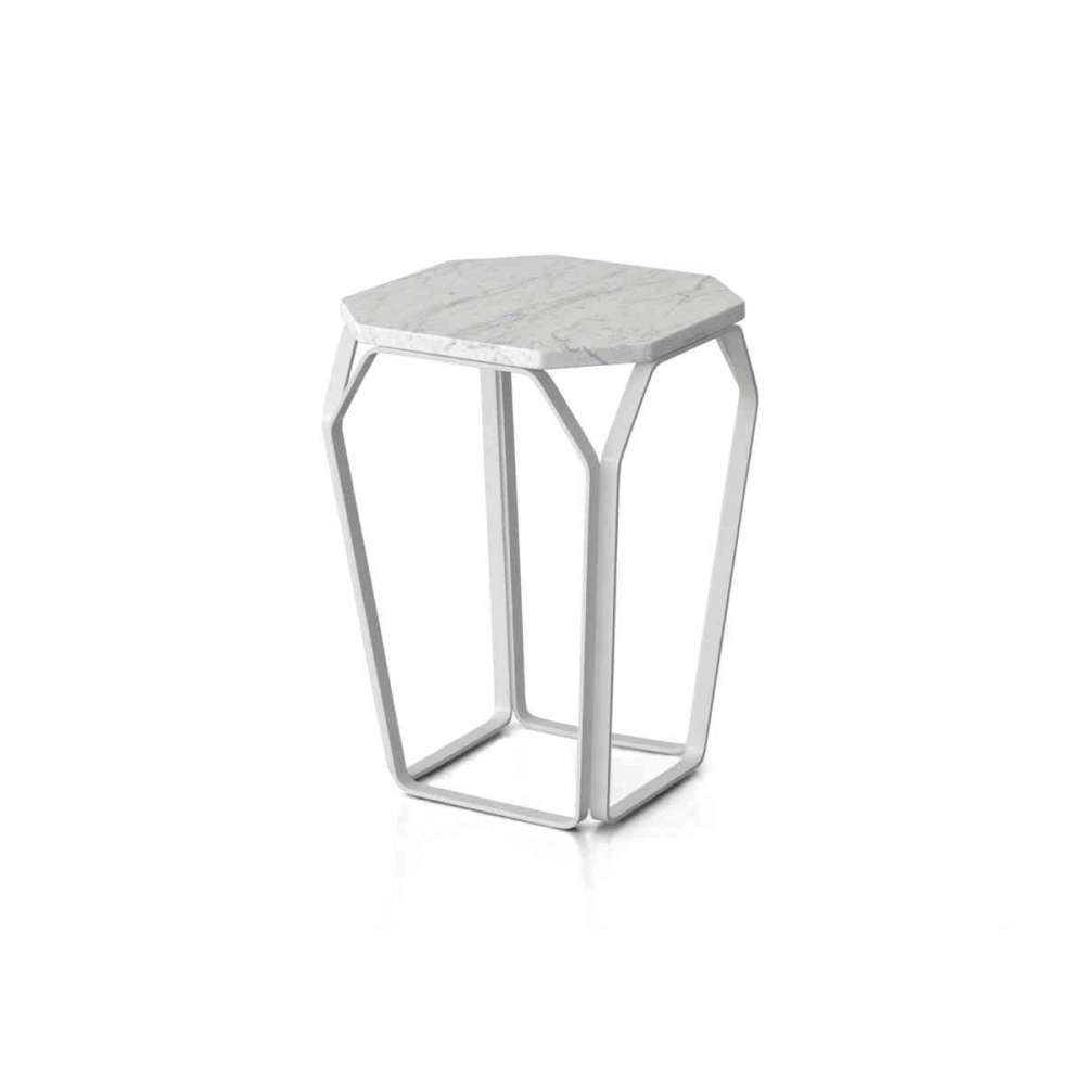 Elegancka kolekcja o nietypowych kształtach z ośmiokątnymi blatami, dostępna w lakierowanym metalu lub w różnych wykończeniach z błyszczącego lub matowego marmuru. Skalibrowana gra grubości, szczeliny pod różnymi kątami wyróżniają ją w projekcie, podkreślając krzywe.