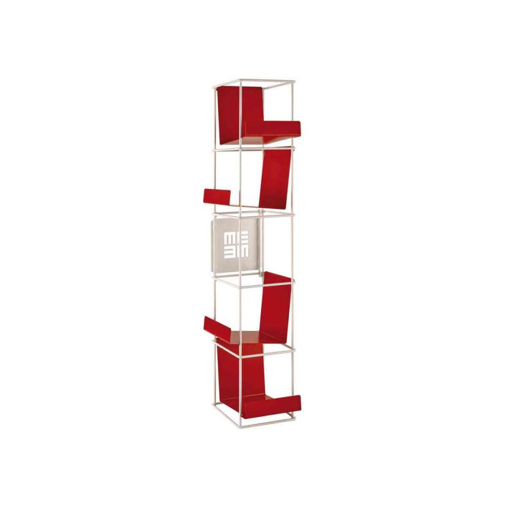 Pozorna sztywność modułowej struktury utworzonej przez przecięcie rurowych elementów ujawnia się jako część wysoce konfigurowalnego kreatywnego projektu, począwszy od logo. 4 półki wbudowane w moduł nośny, z lekkim nachyleniem, aby nigdy nie upuścić książek, czasopism i przedmiotów, mogą być lakierowane nawet w kolorach innych niż rama konstrukcyjna.