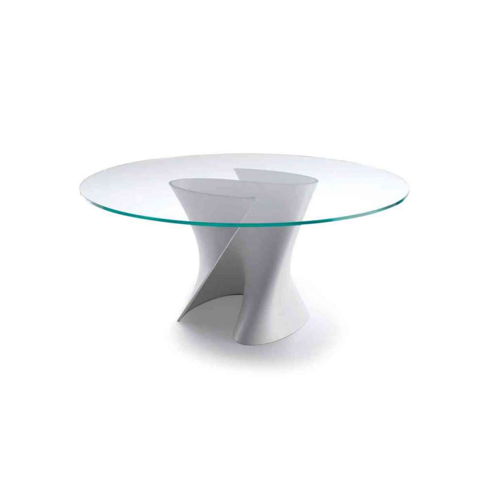 Stoły okrągłe lub owalne. Skręcony stojak w kształcie litery S, formowany w Cristalplant® w matowej bieli lub Ceramilux® w błyszczącej czerni. Blaty do białego stojaka z przezroczystego lub bardzo jasnego szkła o grubości 15 mm lub przezroczystego lub bardzo jasnego szkła hartowanego lub z płyty pilśniowej o średniej gęstości o grubości 30 mm, lakierowanej w kolorze białym matowym z wykończeniem odpornym na zarysowania lub w kolorze Cristalplant® w kolorze matowym biały. Blaty do czarnego stojaka z szarego dymionego szkła hartowanego.