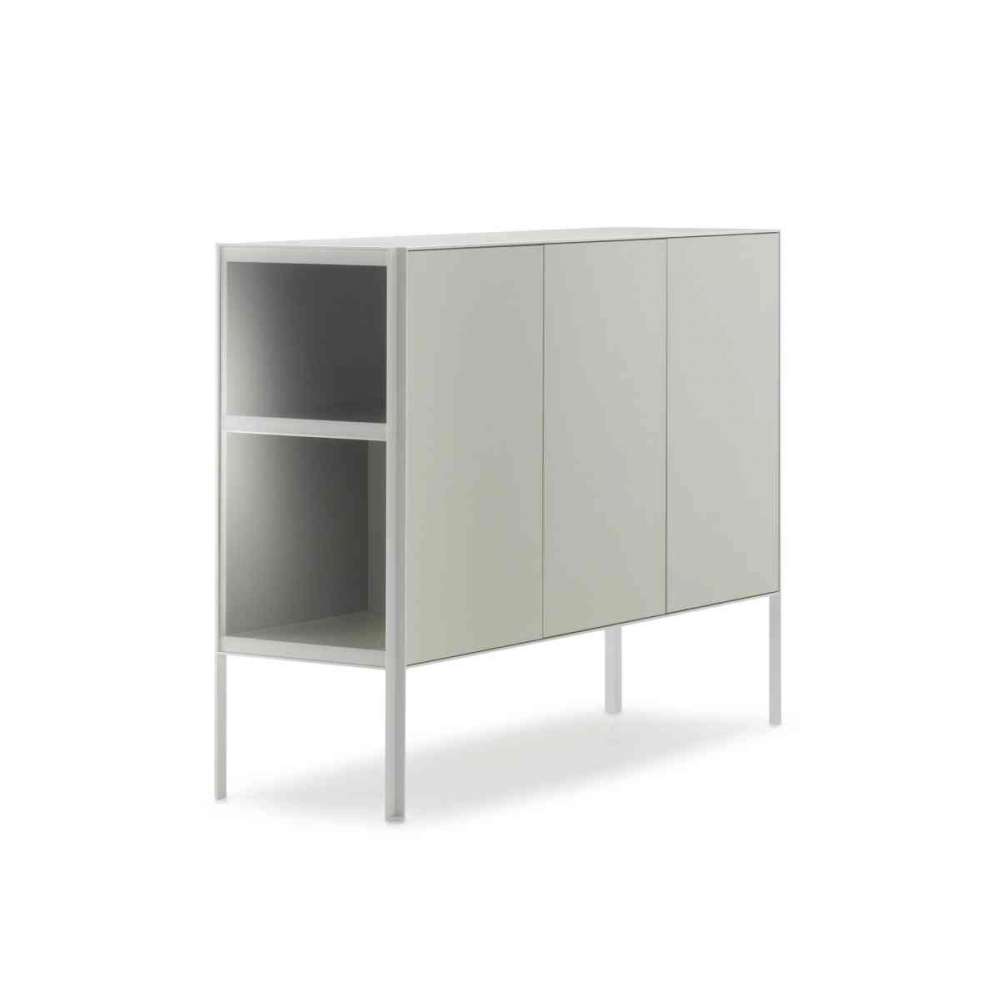 System szafek z drzwiami, szufladami i otwartymi przegrodami do różnych środowisk domowych, biurowych i publicznych. L200cm (rzeczywista L199,5cm), wysokość nominalna H80cm (rzeczywista H79,7cm), głębokość D50cm. Dostępne z 4 drzwiami lub 2 drzwiami, pojedynczą szufladą i otwartą komorą lub dwojgiem drzwi i podwójną szufladą D50 cm. Dostępna z 3 drzwiami lub 3 drzwiami i otwartą komorą.
