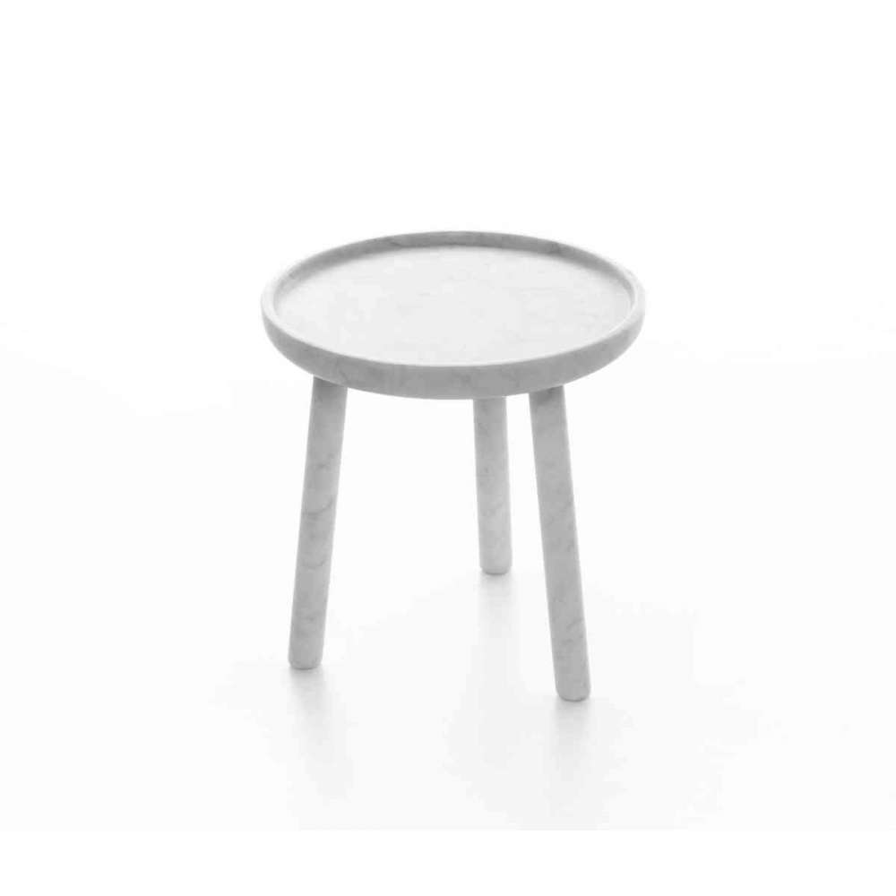 Niski stolik, okrągły, z białego marmuru Carrara, matowe polerowane wykończenie