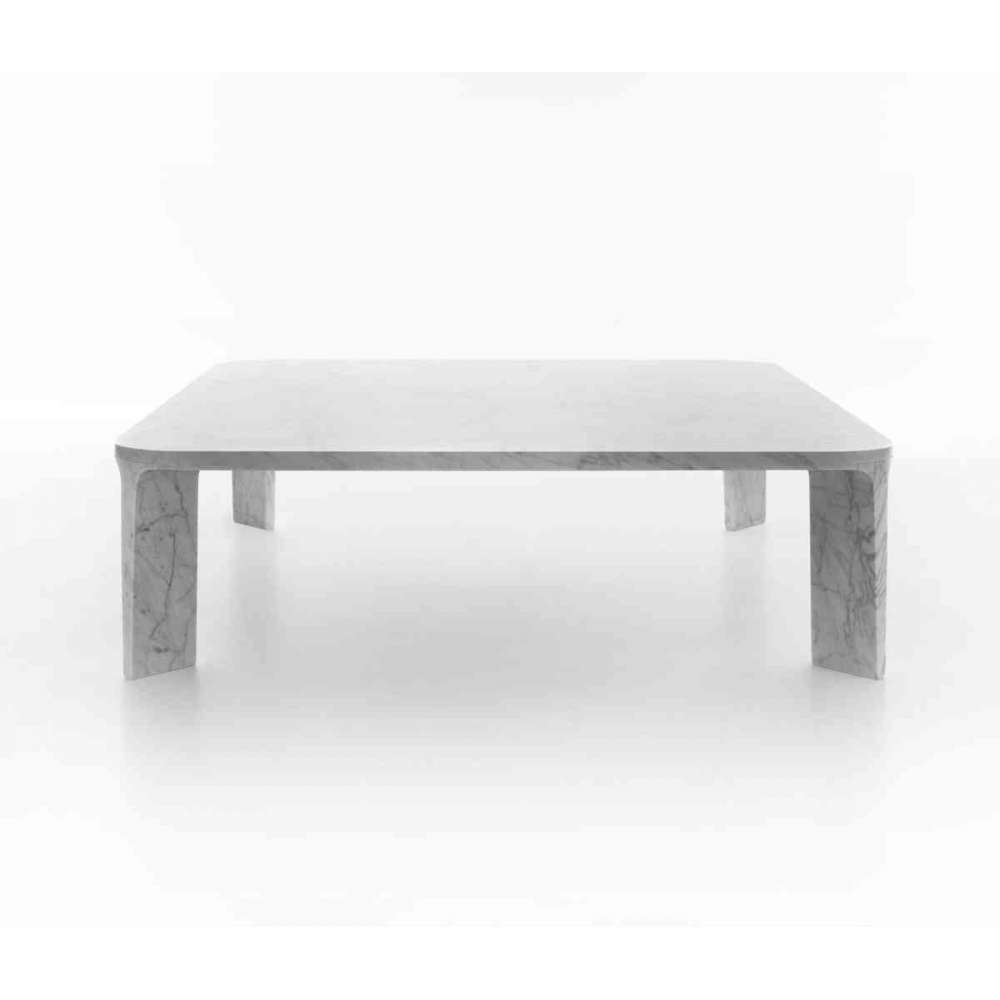 Niski stolik, kwadratowy, z białego marmuru Carrara, matowe wykończenie