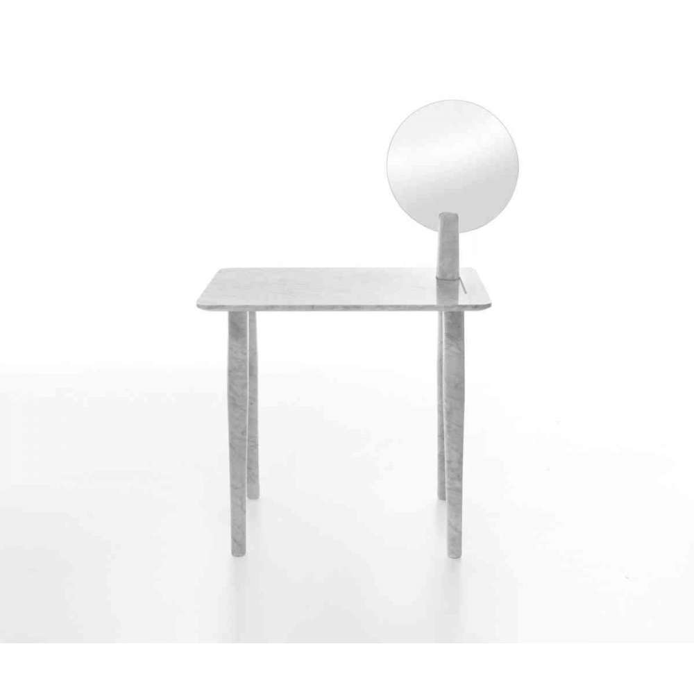Toaletka z odłączanym lustrem, z białego marmuru Carrara, dostępna również z czarnego marmuru marquina, matowe polerowane wykończenie, cm dł. 80 x szer. 50 x 72, lustro cm dł. 38 x szer. 7 x wys. 54,2