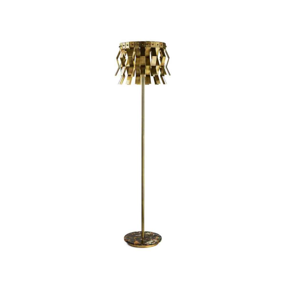 Lampa podłogowa Veronica z ozdobnymi elementami mosiężnymi i marmurową podstawą. Pasiaste źródło światła pozwala na płynne oświetlenie każdego wnętrza. Wymiary: wys.180x50x35 cm