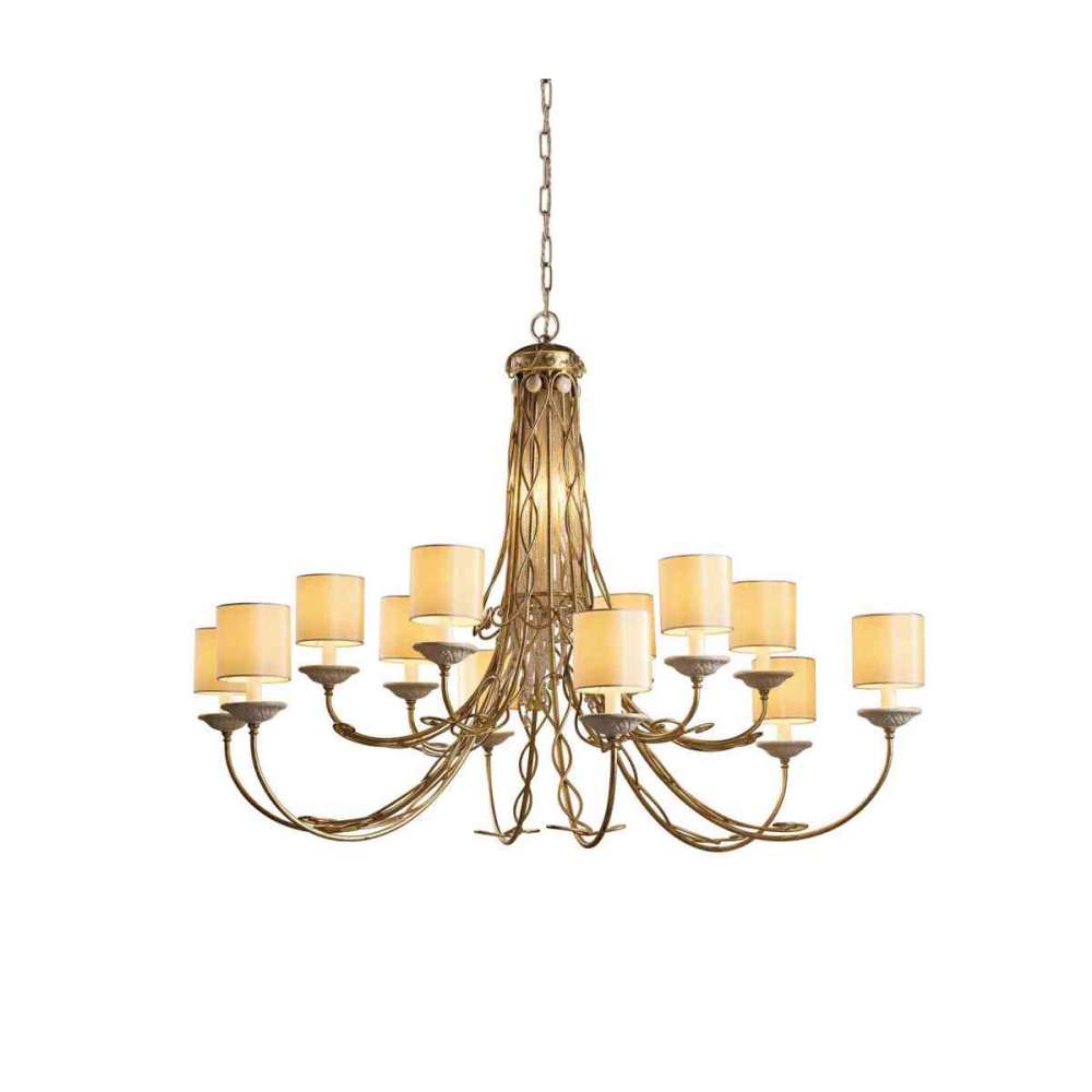 Miękki żyrandol na dwanaście świateł z cylindrycznymi kloszami. Dostępne w różnych wykończeniach i wymiarach. Można zrobić na miarę.