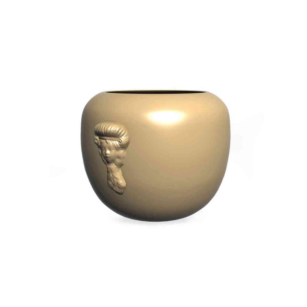 Duża doniczka żebrowana z medalionami ze szkliwionej ceramiki. Dostępne w różnych rozmiarach i różnych wykończeniach. Wymiary: wys.36x50x39 cm