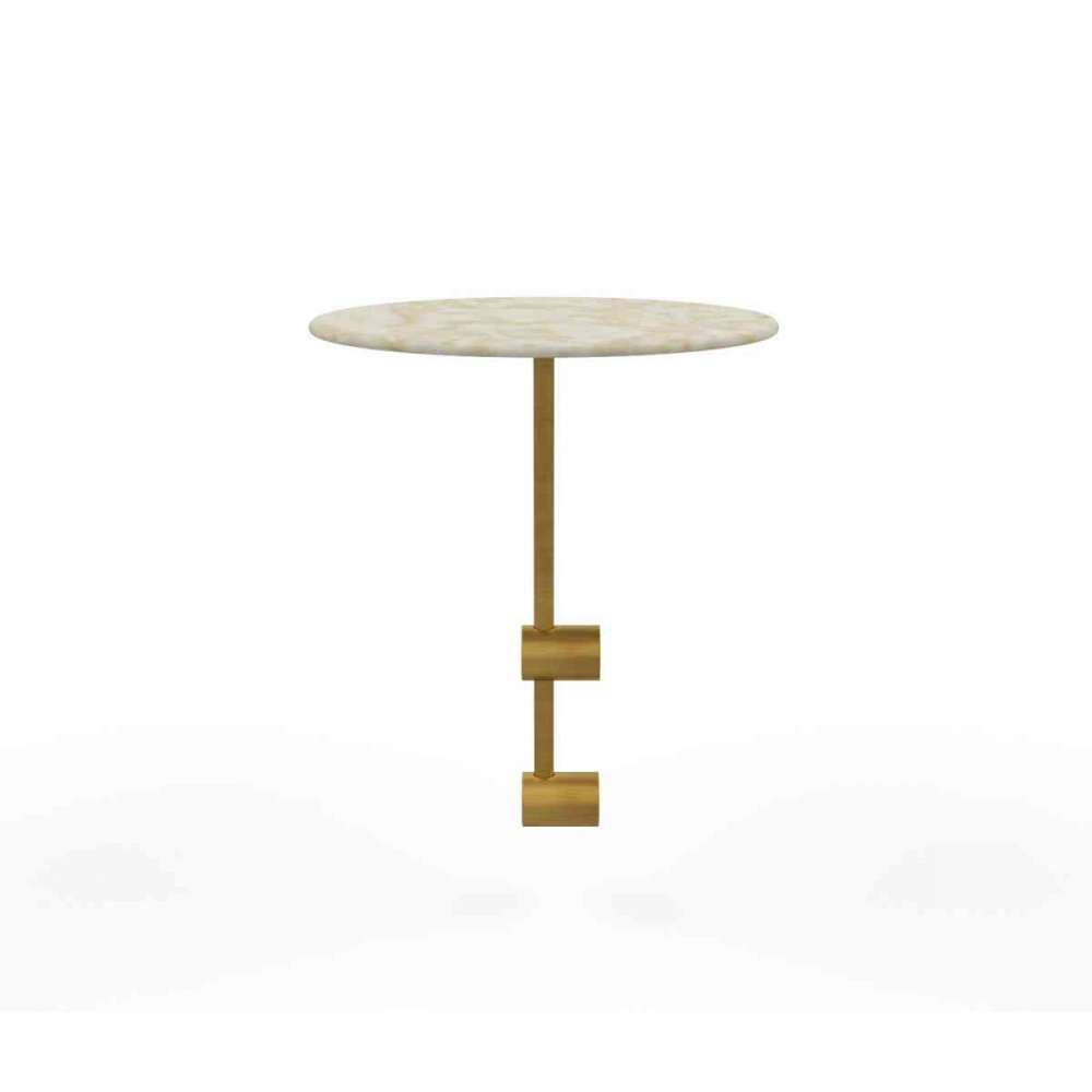 Funkcjonalny i wszechstronny stolik boczny z nóżką ze szczotkowanego mosiądzu podtrzymującą marmurowy blat. Zaprojektowany do połączenia jako element dekoracyjny z linią mebli tapicerowanych MYTHOS poprzez prosty system wtykowy. Blat dostępny z różnymi kombinacjami marmuru.