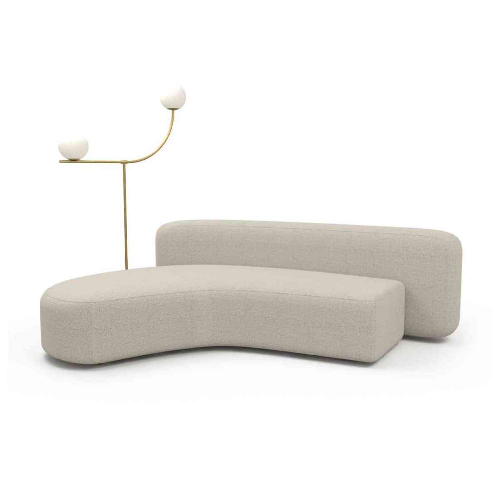 Czysty kształt i linie, niezależna sofa z możliwością komponowania i rozkładania zgodnie z potrzebami funkcjonalnymi i estetycznymi związanymi z nowymi trendami życia. Przyjemne i szerokie siedzisko można dowolnie wyposażyć w akcesoria, takie jak stoliki boczne ze szczotkowanego mosiądzu z malowanym od tyłu szklanym blatem lub lampki podłogowe do czytania za pomocą prostego systemu wtykowego.