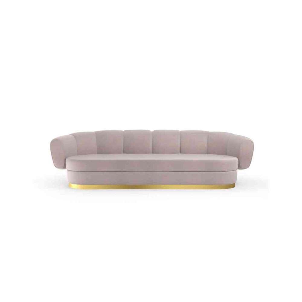 Grace to pięcioosobowa sofa charakteryzująca się wyprofilowaną falistą linią i metalową podstawą. Jest bardzo wszechstronny i pasuje do każdego otoczenia, jest idealny do małych salonów i dużych otwartych przestrzeni. Poduszki siedziska i oparcia są duże i przytulne, wykończone szytymi na miarę szwami