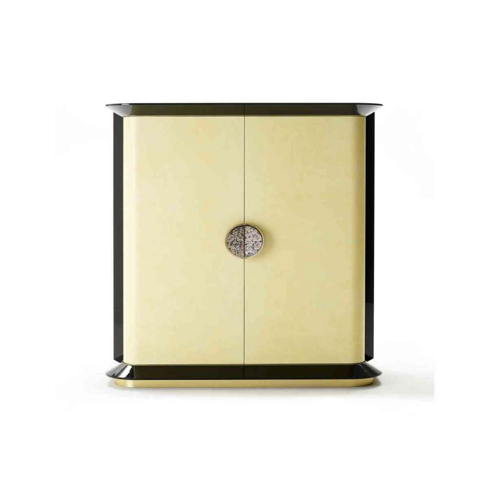 Szafka Anthony z dwoma zakrzywionymi drzwiami z mosiężnymi uchwytami i płytkami ceramicznymi. Lakierowane wewnętrznie w jednolitym kolorze. Szklany blat malowany na czarno. Dostępne w różnych wykończeniach. Każda szafka z kolekcji Notorious wyróżnia się równowagą proporcji, zawsze idealnie wyważonymi, ekskluzywnymi wykończeniami i wyrafinowanymi połączeniami materiałów. Propozycje stworzone w celu zaspokojenia potrzeb w zakresie wyposażenia, aby nadać różnym środowiskom, w których się znajdują, odrobinę włoskiego uroku i elegancji. Wymiary: wys.150x150x55 cm