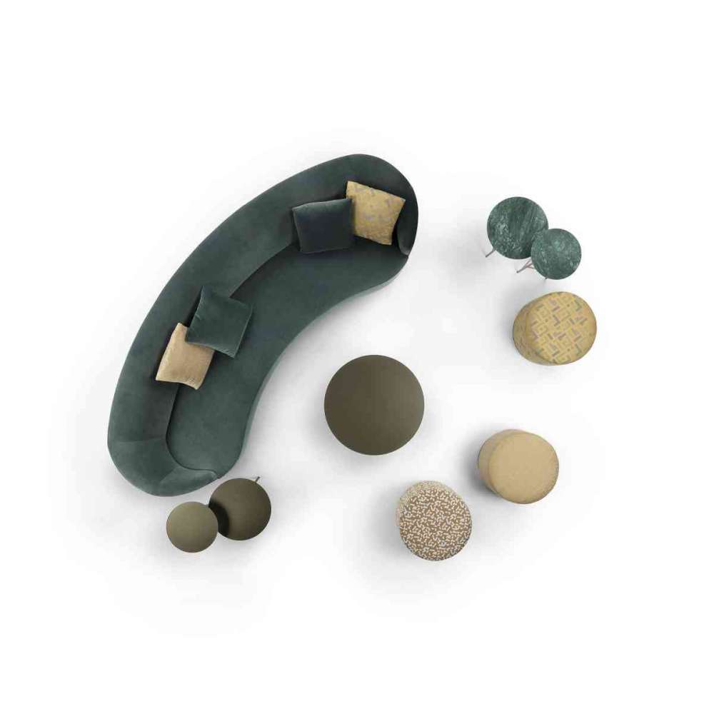 Moon to elegancka kolekcja okrągłych sof, foteli, otoman i elementów modułowych o falistych liniach i nowoczesnych bryłach, idealna do każdej przestrzeni mieszkalnej lub kontraktowej o współczesnym uroku.