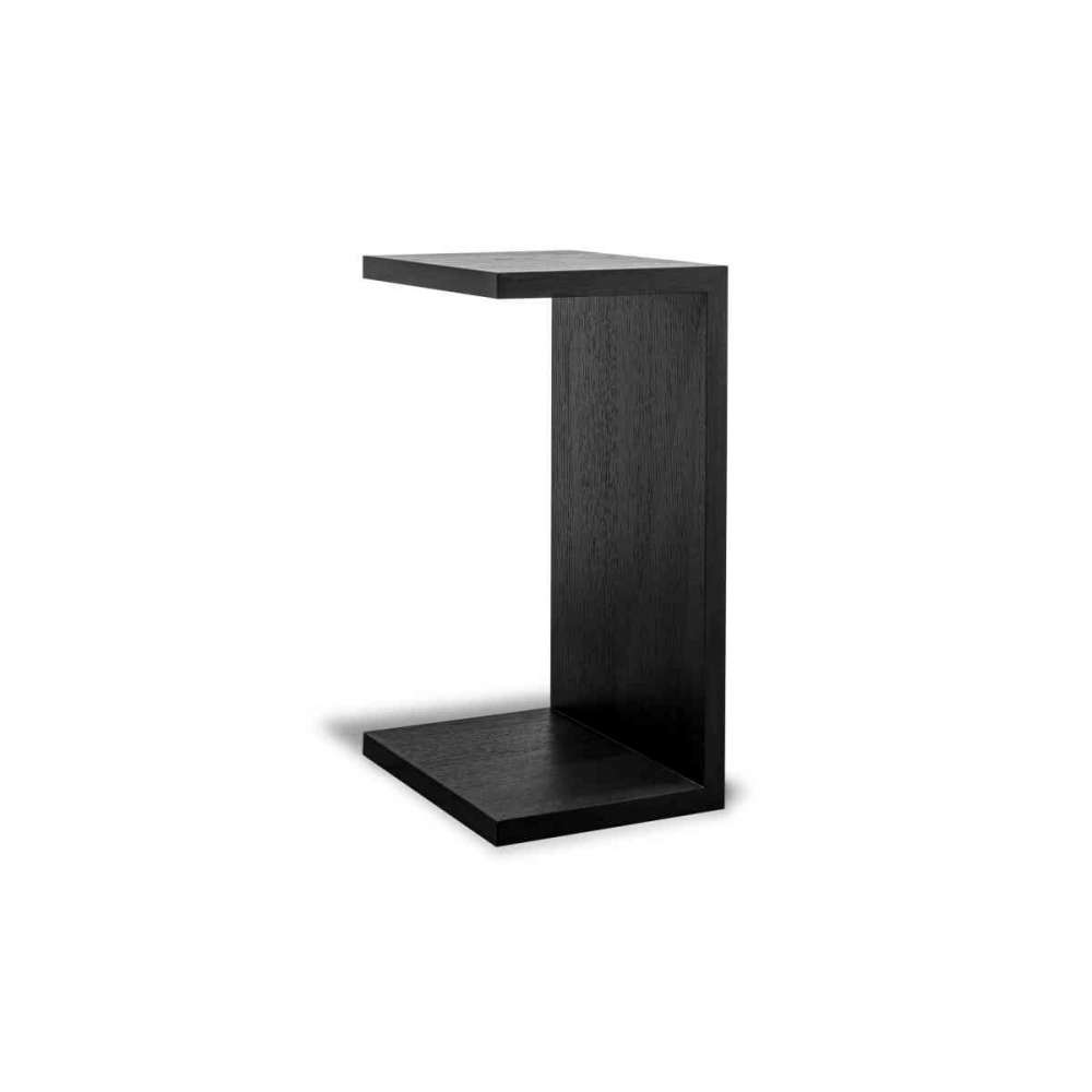 Funkcjonalny stolik boczny, który dzięki swojemu kształtowi można wysunąć do połowy na podłokietnik. Funkcjonalne i dekoracyjne jednocześnie. Blat dostępny w okleinie dębowej, HPL lub MDF (mat, satynowy połysk lub wysoki połysk). Ciemny. 31 szer. x 40 gł. x 66 wys. cm