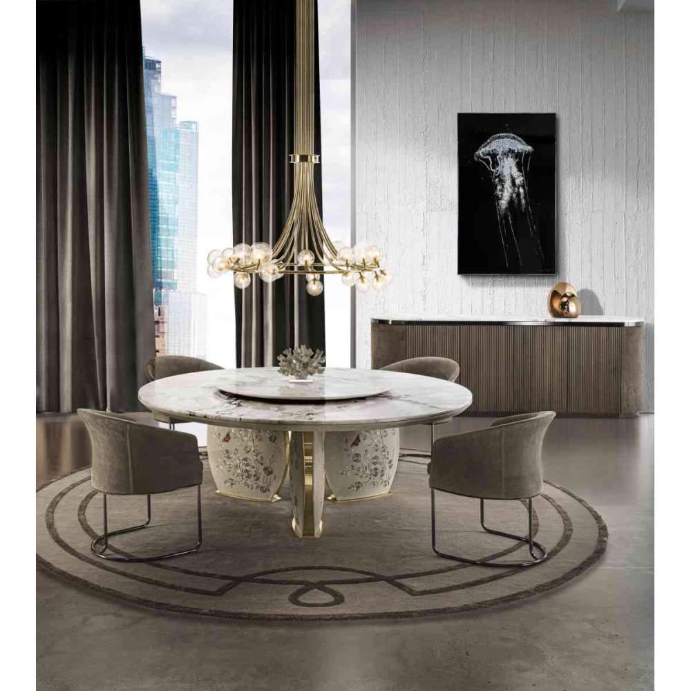 Do okrągłego stołu dostępny jest leniwy susan (cm Ø 75-90-110), albo ustawiony na w blacie lub wpuszczany w blat, z możliwością dodania elektrycznego mechanizmu podnoszącego ułatwiającego czyszczenie.