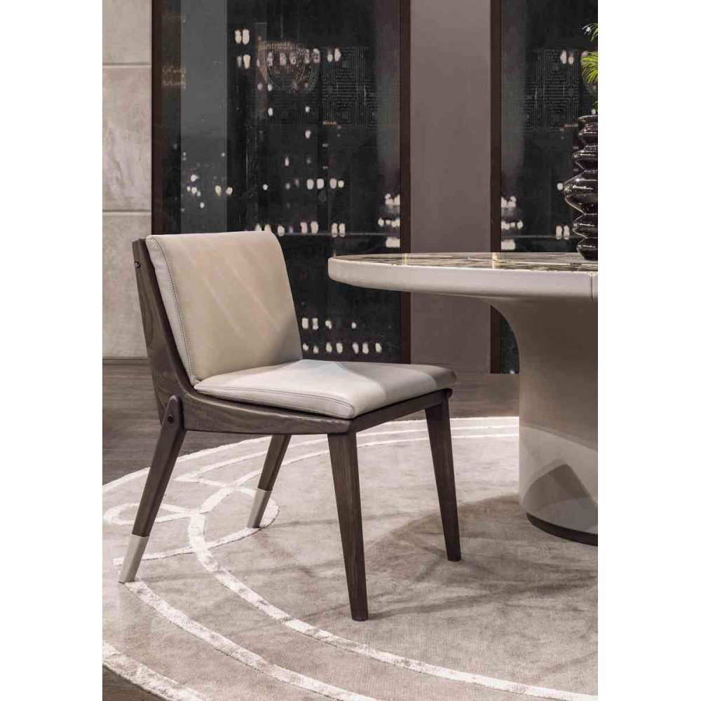 Na oparciu elegancki uchwyt z plecionej skóry siodłowej w kolorze ciemnego brązu lub naturalnego beżu, mocowany do stelaża z chromowanymi metalowymi ćwiekami w następujących wykończeniach: