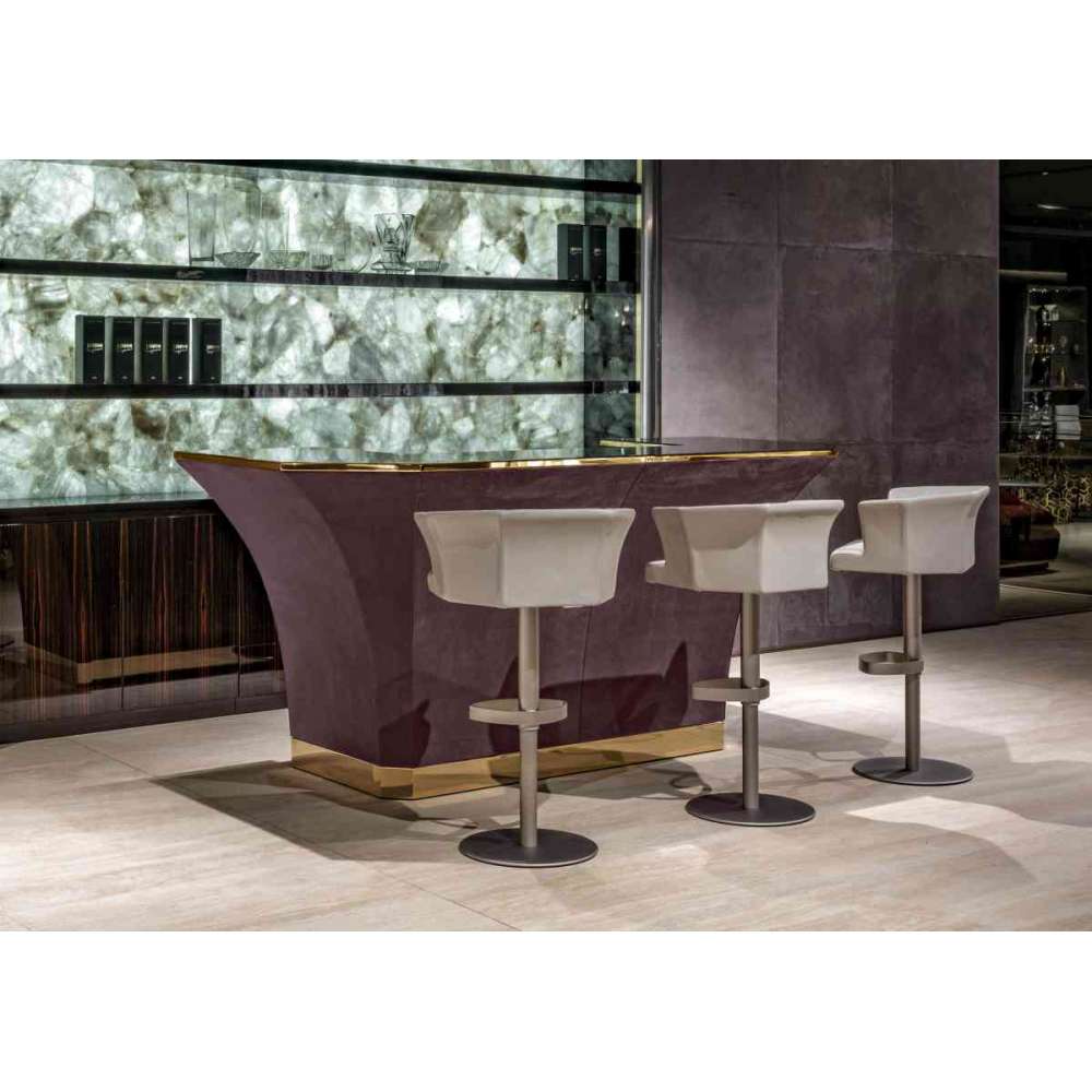 Górna powierzchnia z brązu lub przydymionego lustra. Wewnętrzne wykończenie szafki z drzwiami z hebanu lub orzecha włoskiego Canaletto jest wykonane z barwionego na ciemno drewna Zebrano, podczas gdy wewnętrzna struktura z drzwiami Sycamore frisè to matowa kość słoniowa.